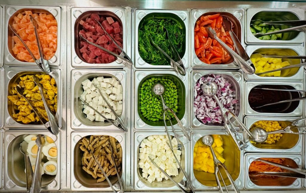 En Poke Brunch, la calidad no tiene secretos. Nuestra barra de ingredientes está siempre a la vista para que compruebes la frescura de nuestros productos: desde cortes de salmón y atún del día hasta una amplia variedad de vegetales, frutas y opciones adaptables para todos los gustos.